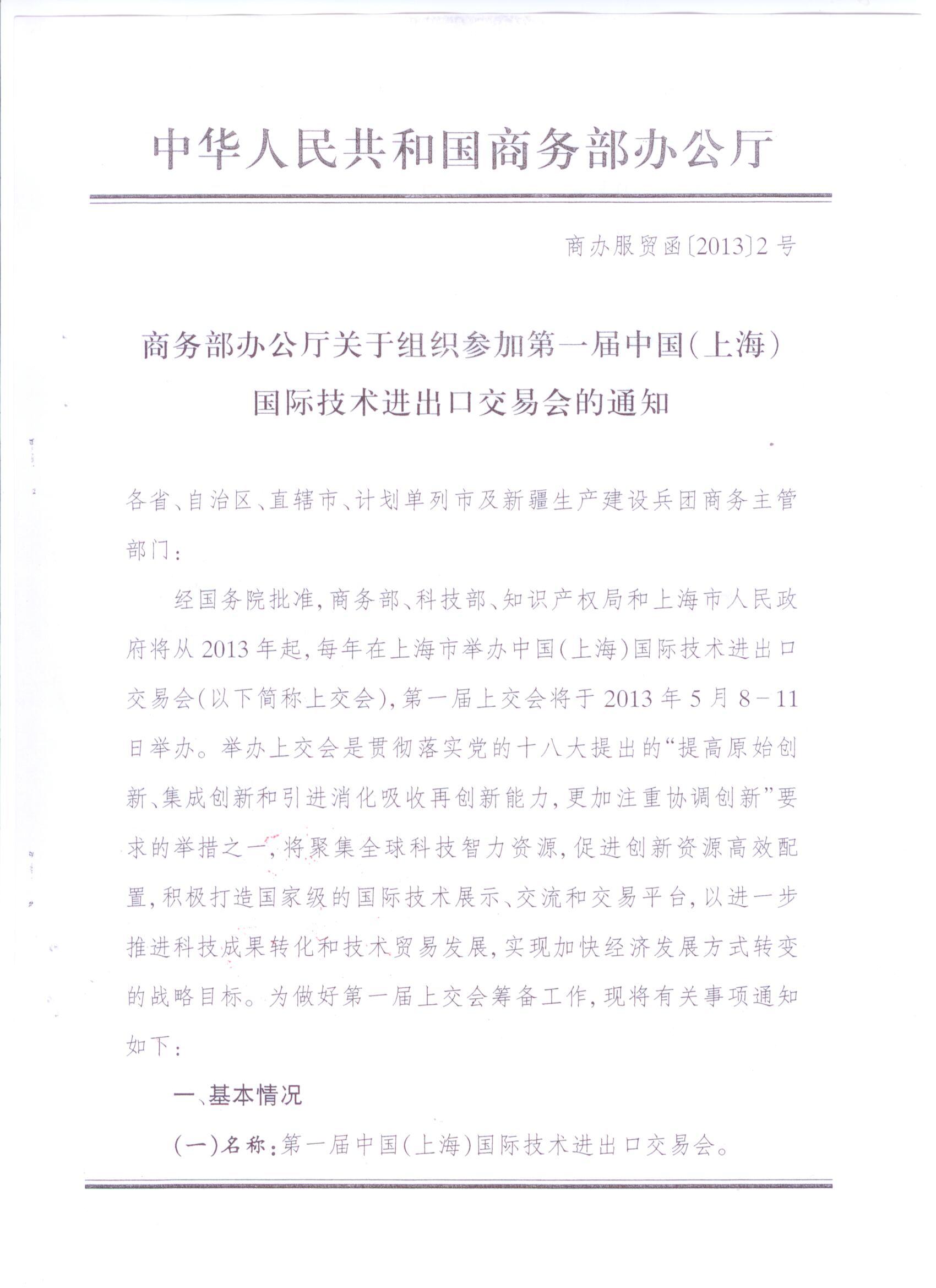 转发:广东省外经贸厅关于组团参加第一届中国(上海)国际技术进出口交易会的通知