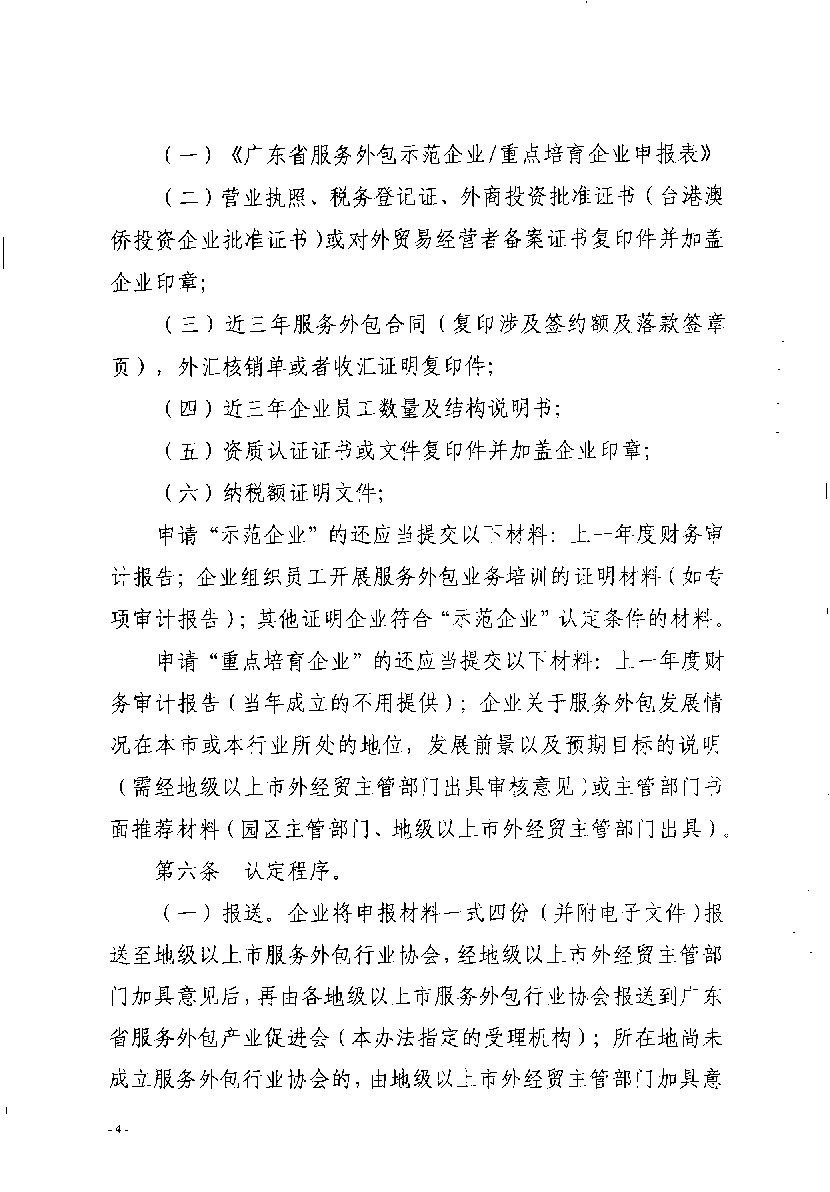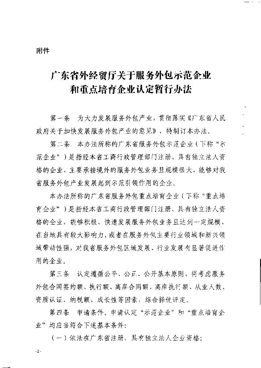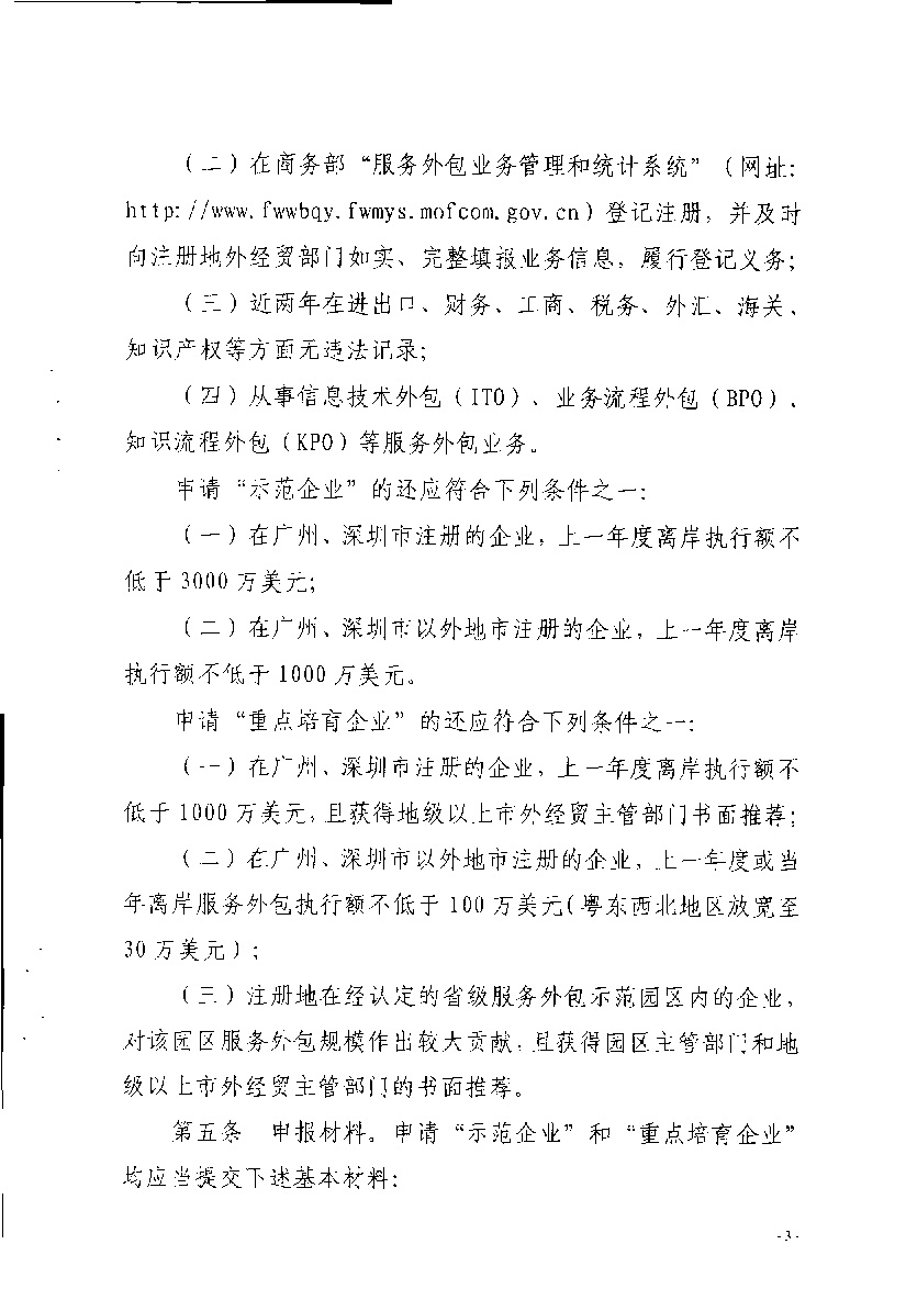 广东省外经贸厅关于开展省级服务外包示范企业和重点培育企业认定工作的通知