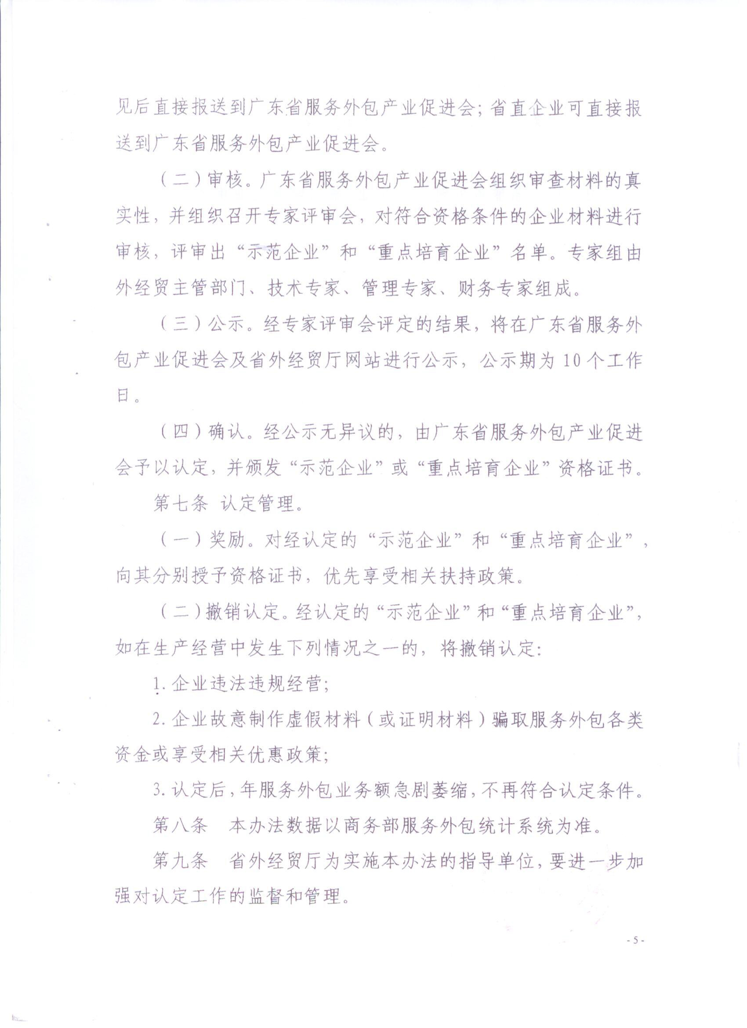 广东省商务厅关于开展省级服务外包示范企业和重点培育企业认定工作的通知