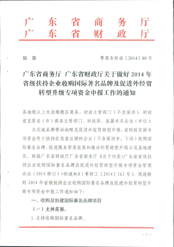 广东省商务厅广东省财政厅关于做好2014年省级扶持企业收购国际著名品牌及促进经贸转型升级专项资金申报工作的通知