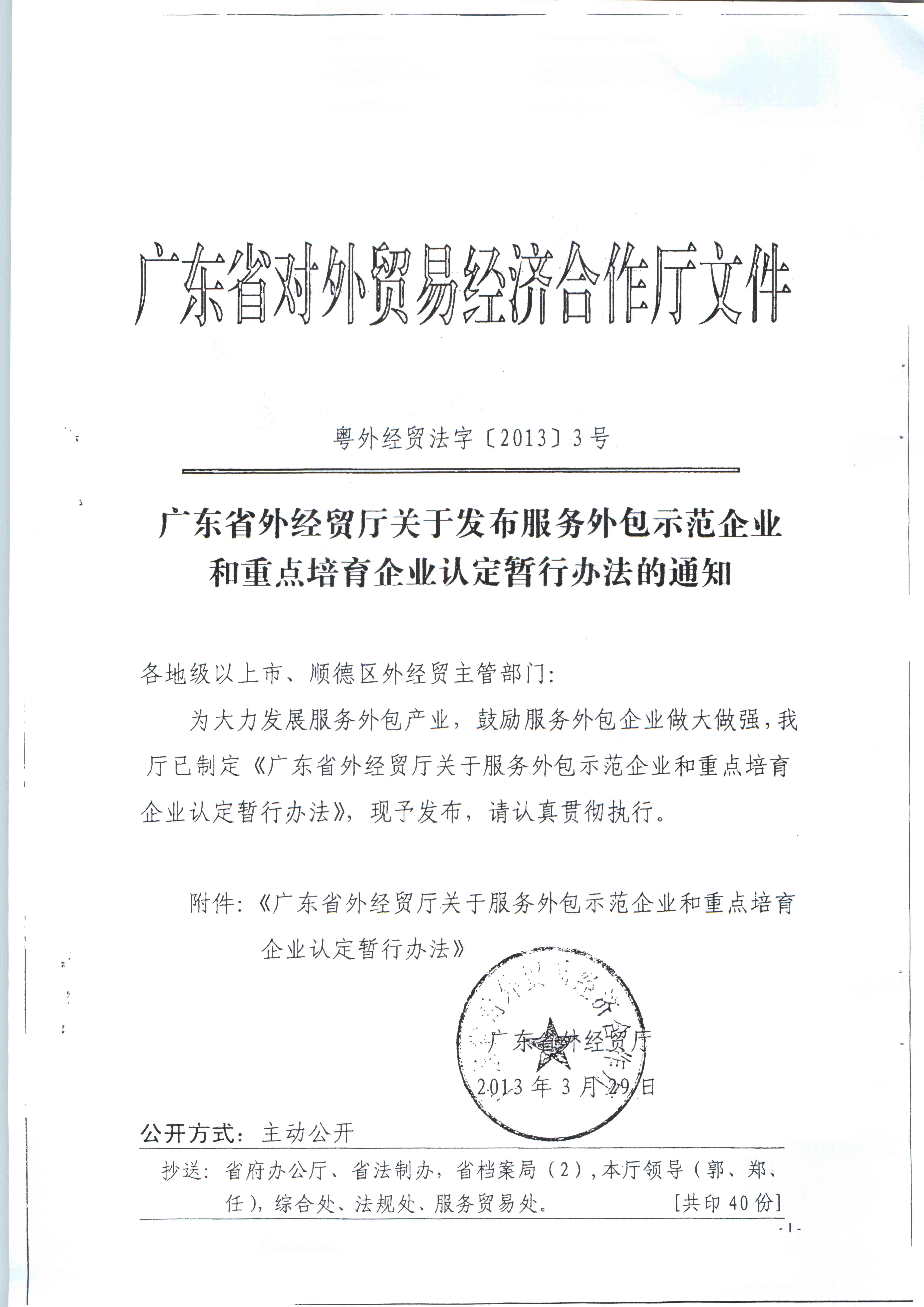转发 广东省商务厅关于开展第四批省级服务外包示范企业和重点培育企业认定工作的通知