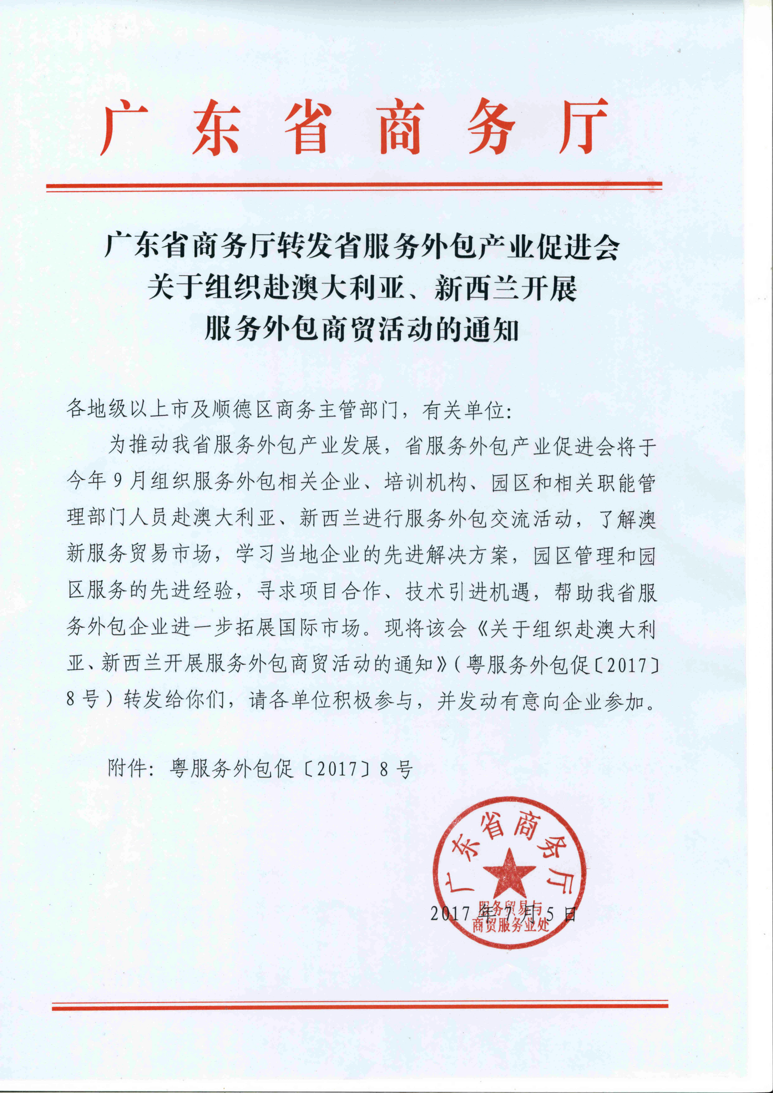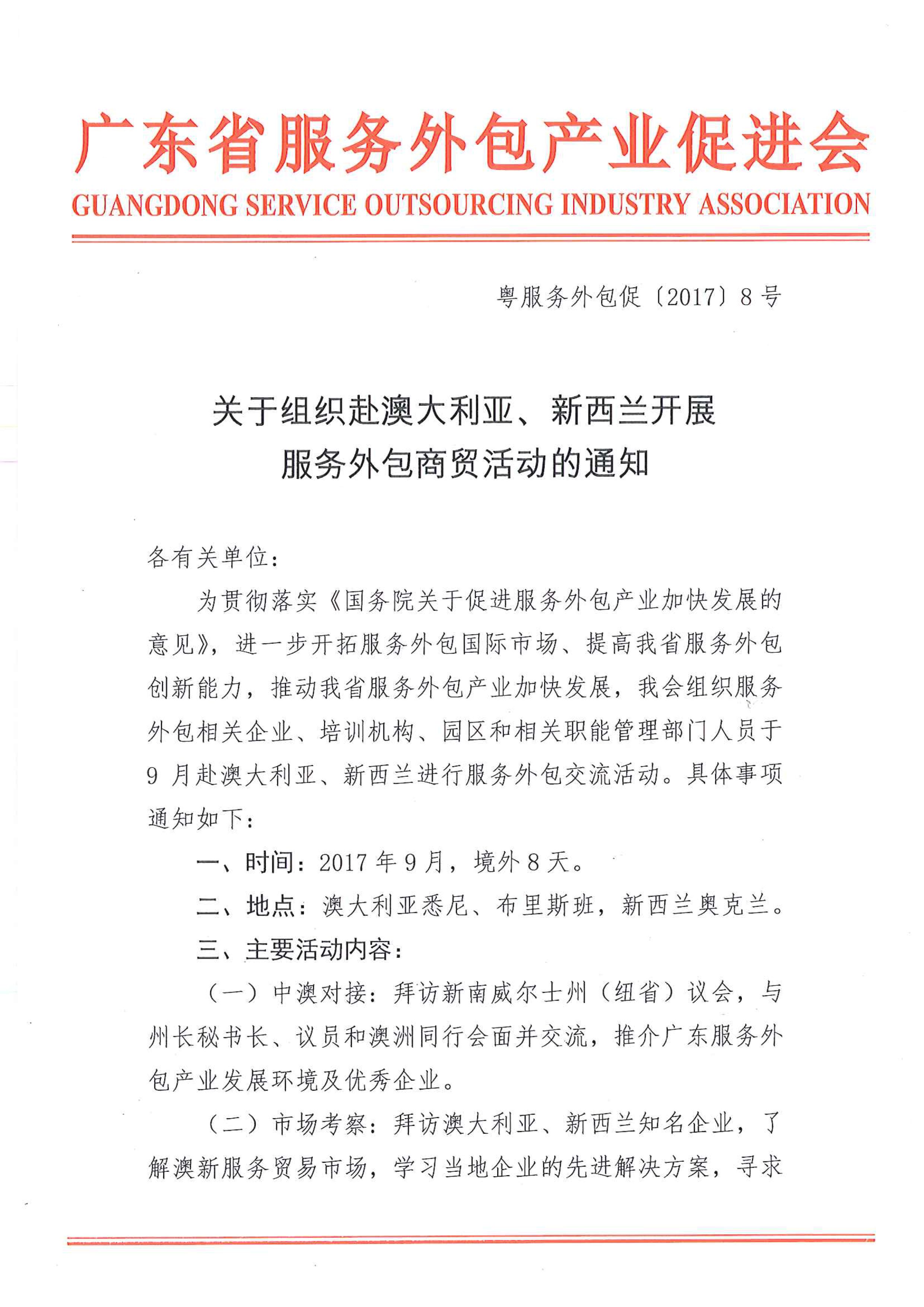关于组织赴澳大利亚、新西兰开展服务外包商贸活动的通知