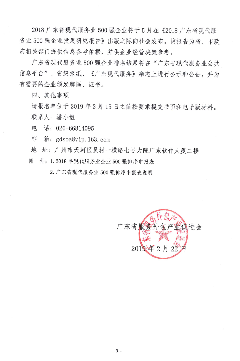 关于申报2018年广东省现代服务业500强企业的通知
